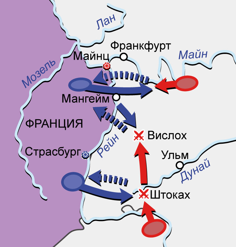 Вторая антифранцузская коалиция 1798–1802 гг. Карта кампании на Рейне в 1799 г.