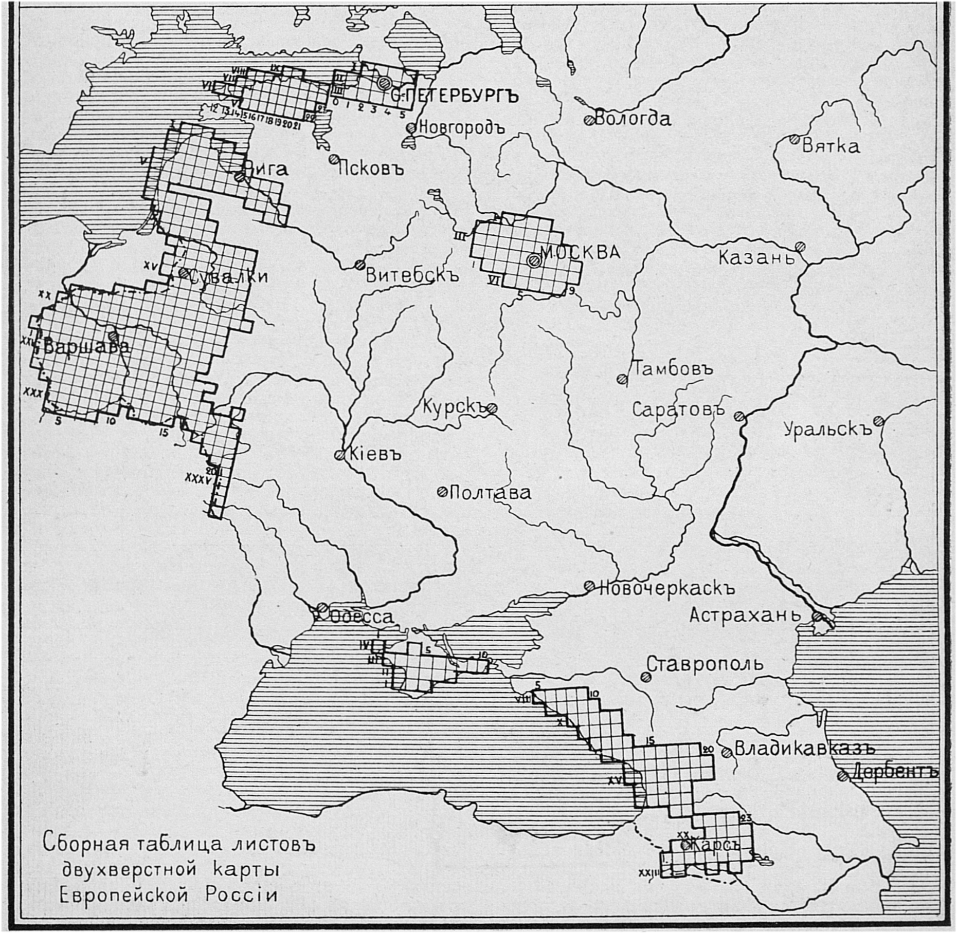 Сборная таблица листов двухверстной карты Европейской России