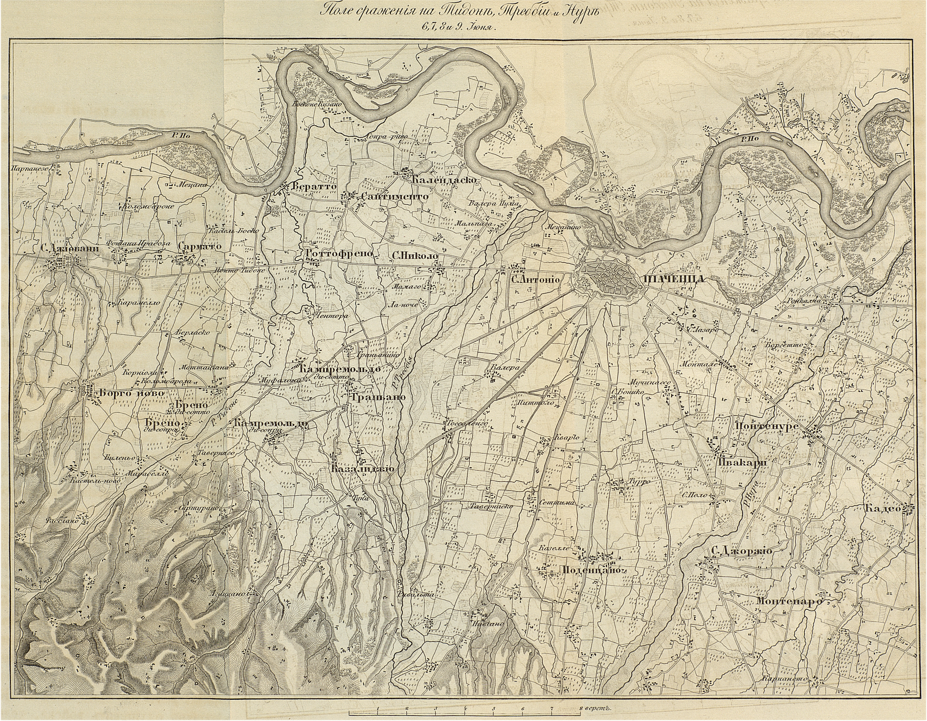 Поле сражения на Тидоне, Треббии и Нуре 6, 7 и 8 июня 1799 года